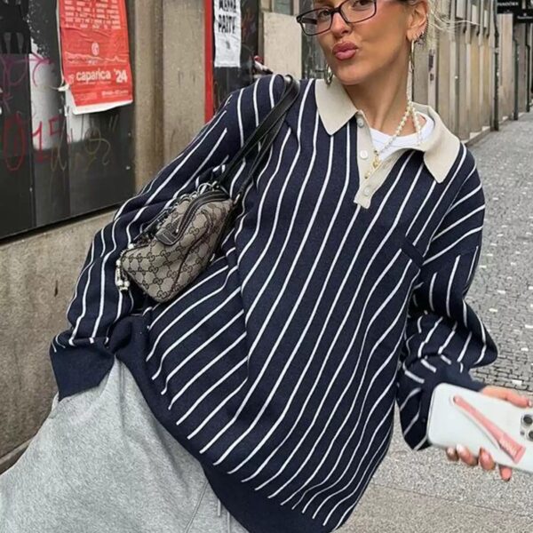 Sporty Color-Blocked Polo Collar Button Sweatshirt