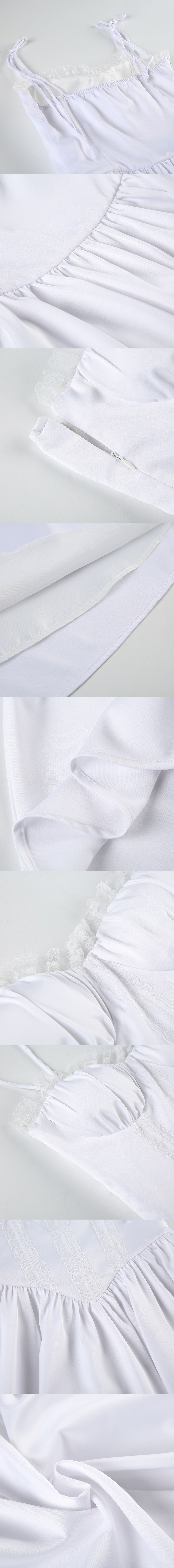 Embrace the charm of nature with this cottagecore spaghetti strap A-line white dress. Crafted from lightweight, breathable fabric, it features a relaxed A-line cut for effortless comfort and style. The spaghetti straps beautifully accentuate your shoulders, adding a touch of elegance and femininity. A versatile wardrobe staple, this white dress is perfect for spring and summer outings, casual gatherings, or romantic picnics. Pair it with straw sandals and a woven bag to create a dreamy, cottage-inspired look that’s both sweet and chic.