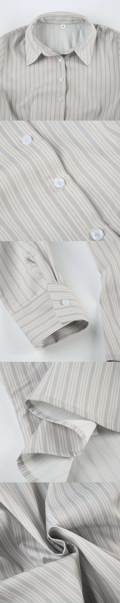 This everyday simple casual striped collared shirt offers the perfect blend of comfort and style for daily wear. Made from soft and breathable fabric, it provides a light and enjoyable wearing experience. The simple striped pattern paired with the classic collared design keeps it stylish yet uncomplicated, making it ideal for various casual occasions. Whether paired with jeans, casual trousers, or skirts, this shirt effortlessly creates a laid-back yet chic look. Its minimalist design makes it a versatile wardrobe staple, perfect for everything from office wear to weekend outings, showcasing both elegance and comfort.