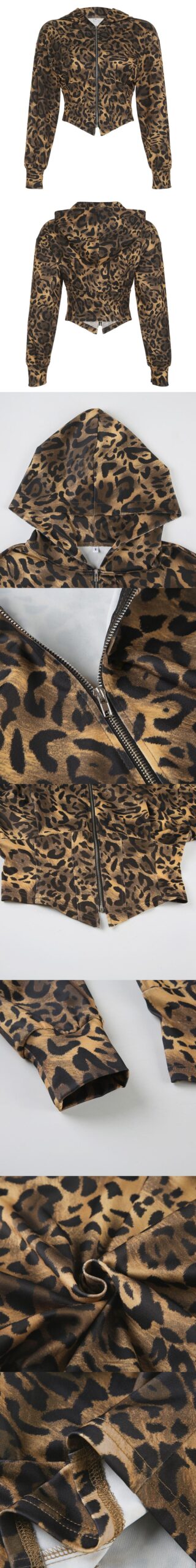Be the first to review “Retro Leopard Print Zip-Up Hooded Crop Jacket”
