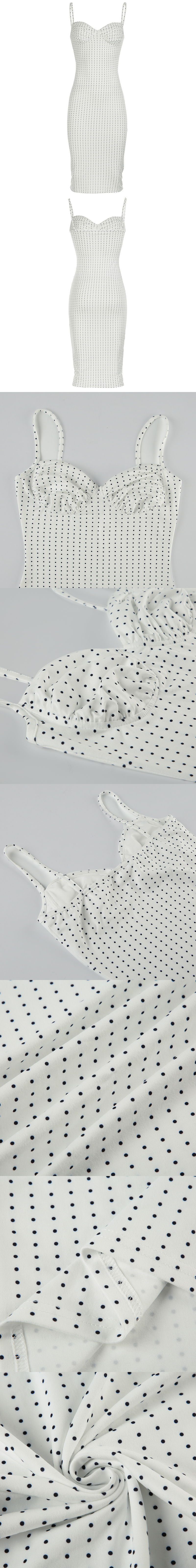 This sexy polka dot bust-shaped spaghetti strap bodycon midi dress features a unique combination of playful polka dots and a bust-enhancing cut, creating a retro yet sensual vibe. The spaghetti straps beautifully showcase your shoulders, while the bodycon design hugs your figure, emphasizing your curves and sculpting your silhouette. Perfect for parties, dates, or casual outings, this dress will make you the center of attention, radiating confidence, elegance, and allure.