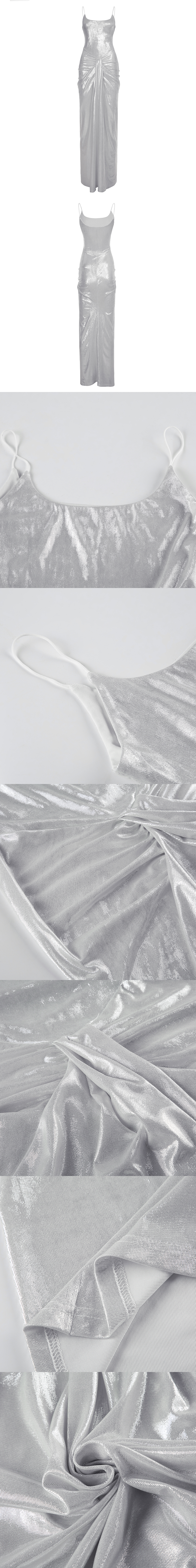 This sexy shiny pleated waist-training spaghetti strap bodycon long dress is made of shiny fabric with pleats and a waist-cinching effect, perfectly sculpting your figure. The spaghetti straps highlight your shoulders, blending sensuality and elegance.