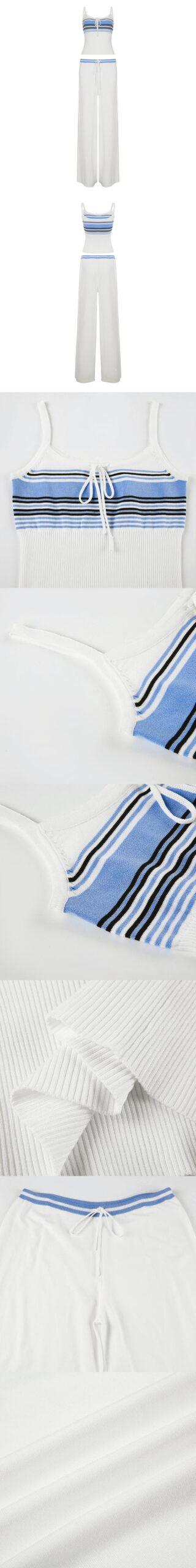 This vacation-style casual set, featuring a striped color block knit tank top and loose-fit pants, is designed for both comfort and style, making it ideal for vacations, relaxation, or everyday wear. The tank top is made from soft, breathable knit fabric, with a vibrant color block stripe design that combines simplicity and modern flair. The loose-fit pants offer a relaxed, comfortable fit, perfect for all-day wear. The overall look exudes a laid-back vacation vibe, making it perfect for beach days, resort visits, or casual city getaways, effortlessly creating a chic and carefree ensemble.