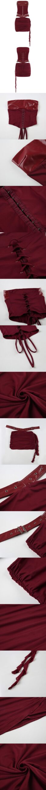 This niche leather red set combines a waist-cinching lace-up design with a backless bandeau and a bodycon skirt, exuding ultimate sexiness and unique charm. The bandeau top highlights the shoulders and neckline, with a striking backless design adding a touch of alluring mystery. The waist-cinching lace-up feature perfectly shapes the waist, accentuating a slender figure, while the bodycon skirt hugs the hips, creating a flawless silhouette. Made from high-quality leather, the delicate texture and sheen enhance the luxurious and fashionable appeal of the outfit. Whether for a party, date, or upscale event, this set will make you the center of attention, showcasing your confidence and feminine allure.