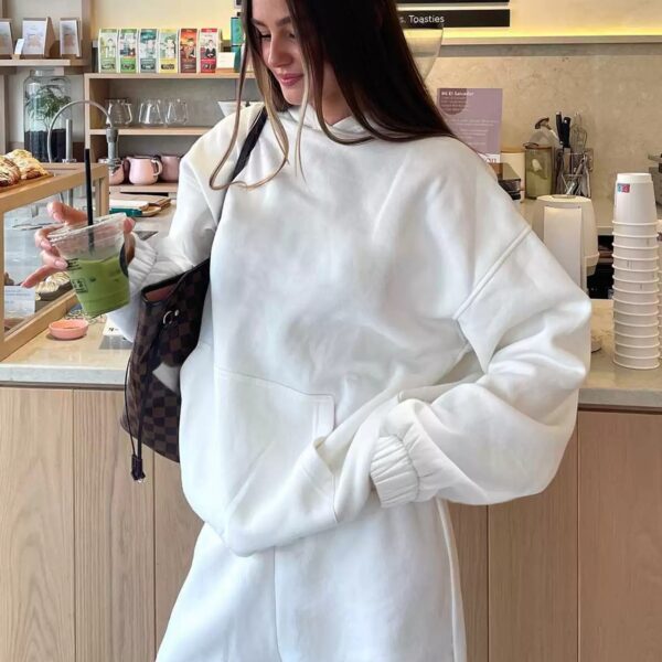 Sports Style Fleece Casual Set – Hoodie with Pockets & Loose Pants
